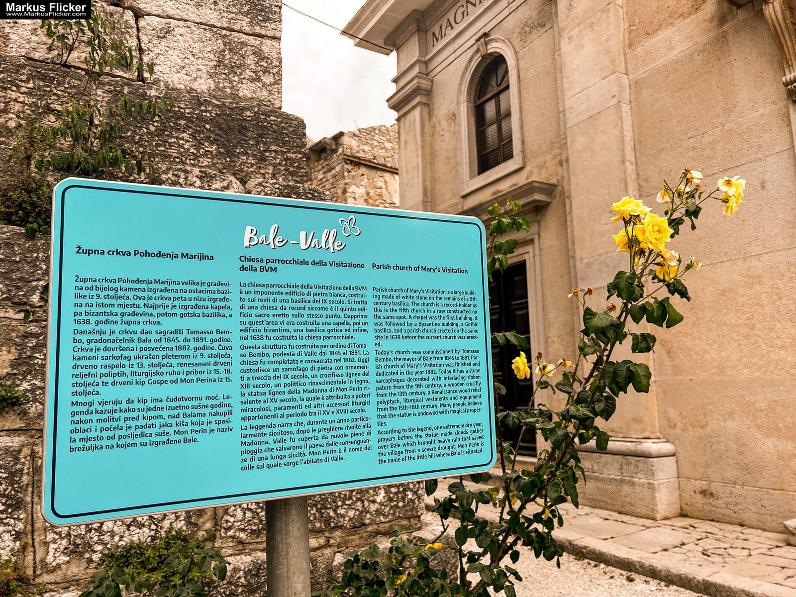 Historische Altstadt: Ein Spaziergang durch die Altstadt von Bale Valle ist wie eine Zeitreise in die Vergangenheit. Die alten Steinhäuser, engen Gassen und das Schloss „Bembo“ erzählen von der reichen Geschichte des Ortes. Besonders sehenswert ist die gotische Kirche „Mariä Himmelfahrt“, die durch ihre Architektur beeindruckt und einen Besuch wert ist.