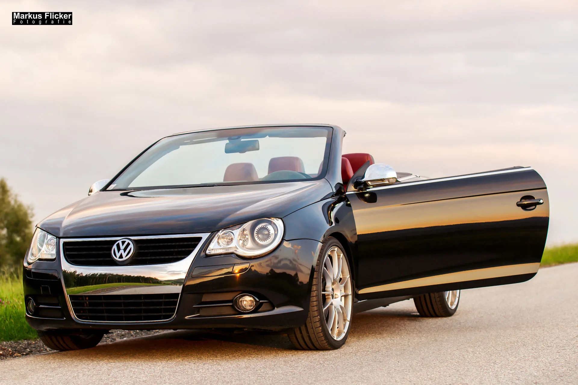 - Mit offenen Türen: Stelle das Model neben den geöffneten Türen des VW EOS auf, als wäre es gerade ausgestiegen und bereit, loszulegen.