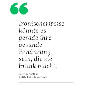 „Gefährliche Superfoods? Warum der hohe Oxalat-Gehalt bestimmter Lebensmittel uns krank machen kann“ von Sally K. Norton ist ein provokatives und informatives Buch, das eine neue Perspektive auf die populäre Vorstellung von gesunden Lebensmitteln bietet. Es stellt eine wertvolle Ressource für diejenigen dar, die sich intensiver mit den potenziellen Fallstricken einer scheinbar gesunden Ernährung auseinandersetzen möchten. Mit wissenschaftlicher Untermauerung und praktischen Ratschlägen zur Ernährungsumstellung fordert Norton ihre Leser heraus, über den Tellerrand hinauszuschauen und die Komplexität der Ernährung und ihre Auswirkungen auf die Gesundheit zu verstehen.