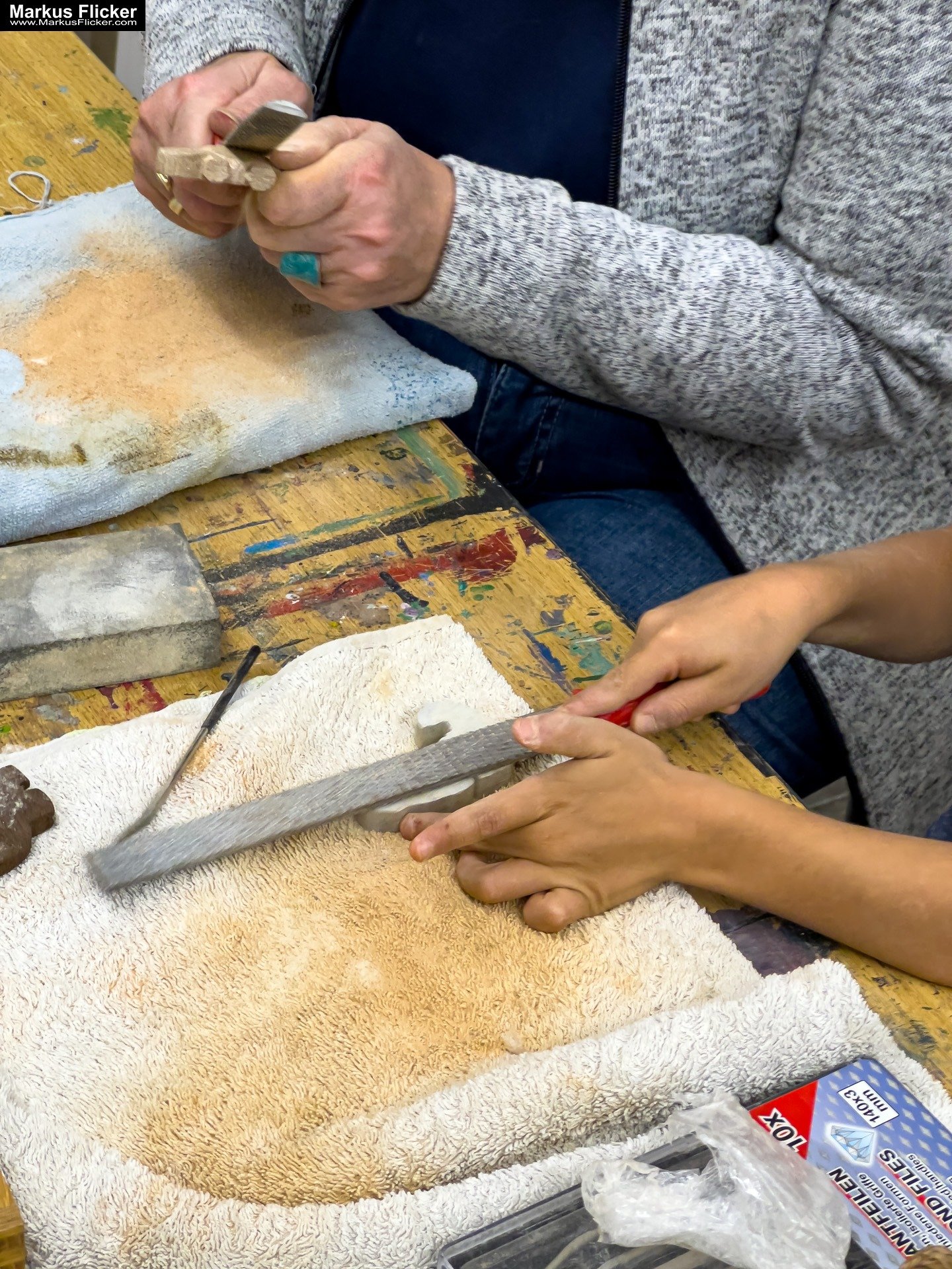 Speckstein und Handyfotografie mit Markus Flicker Markus Flicker bringt den Kindern bei, wie sie aus Speckstein kleine Tiere und Figuren schnitzen können. Außerdem zeigt er ihnen, wie sie mit ihren Handys kreative und künstlerische Fotos machen können.
