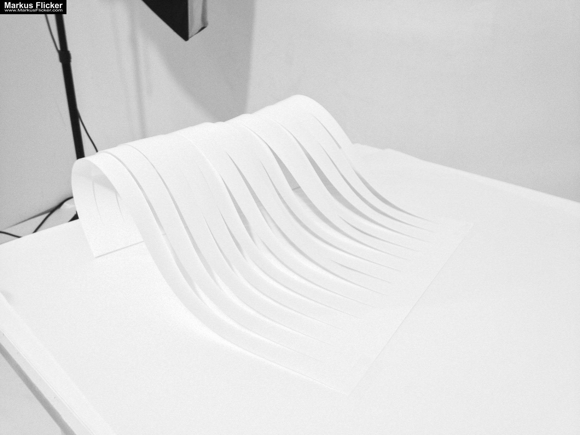 Papier-Wellen: Biege Papier in wellenförmige Strukturen und beleuchte sie aus verschiedenen Winkeln, um dynamische Schattenmuster zu schaffen.
