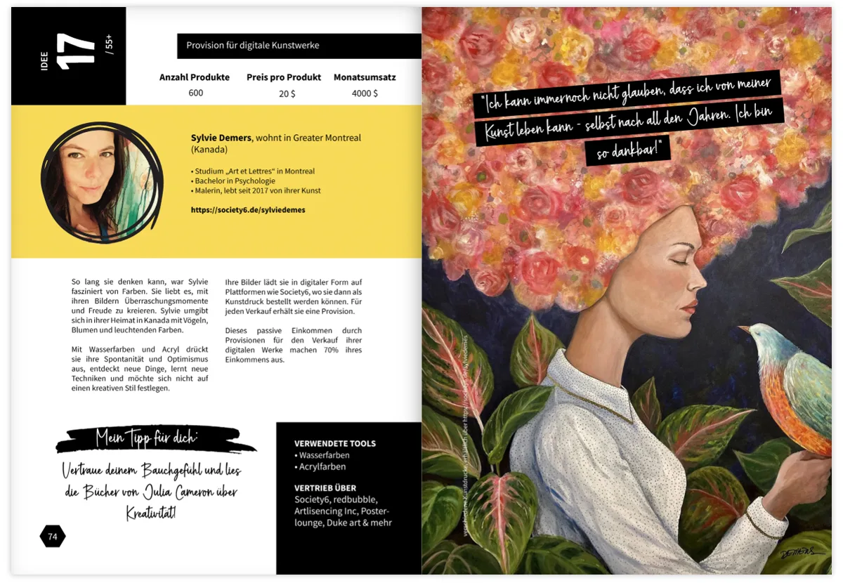 Money Flow! 55 Ideen für passives Einkommen zeigt dir, wie vielfältig diese Wege sein können. Es inspiriert, motiviert und gibt dir das Vertrauen, dein eigenes Business neu zu denken. Für mehr Freiheit, mehr Stabilität und vor allem für ein Leben, das sich wirklich nach dir anfühlt.