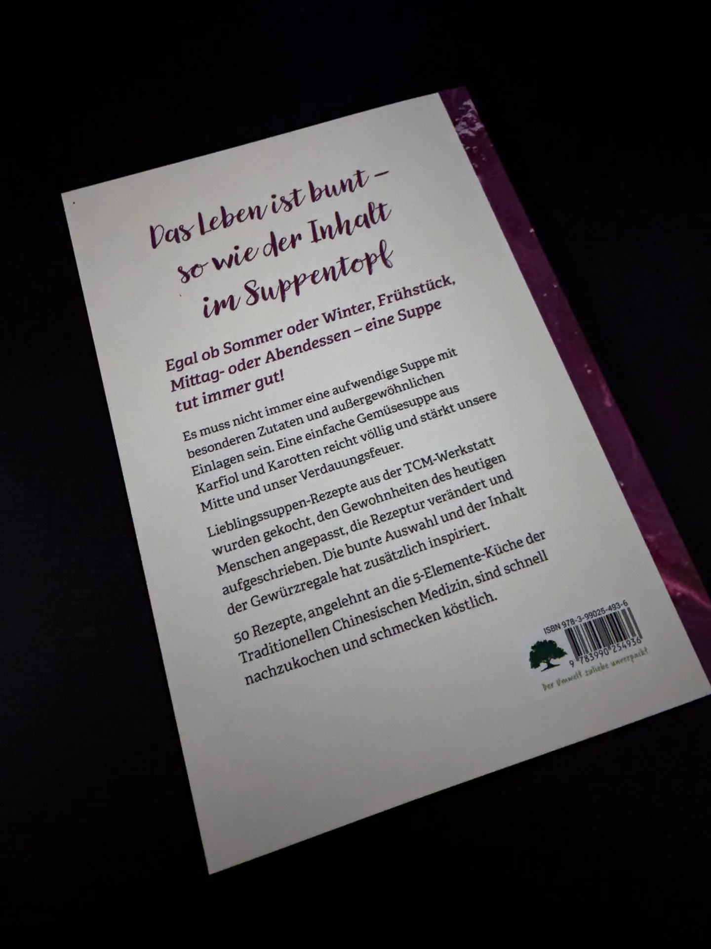 In der sogenannten TCM-Werkstattküche wurde laut Buchbeschreibung experimentiert, recherchiert, gekocht, probiert und an moderne Essgewohnheiten angepasst. Das Ergebnis sind 50 erstklassige Suppen, inspiriert von der Fünf-Elemente-Küche.