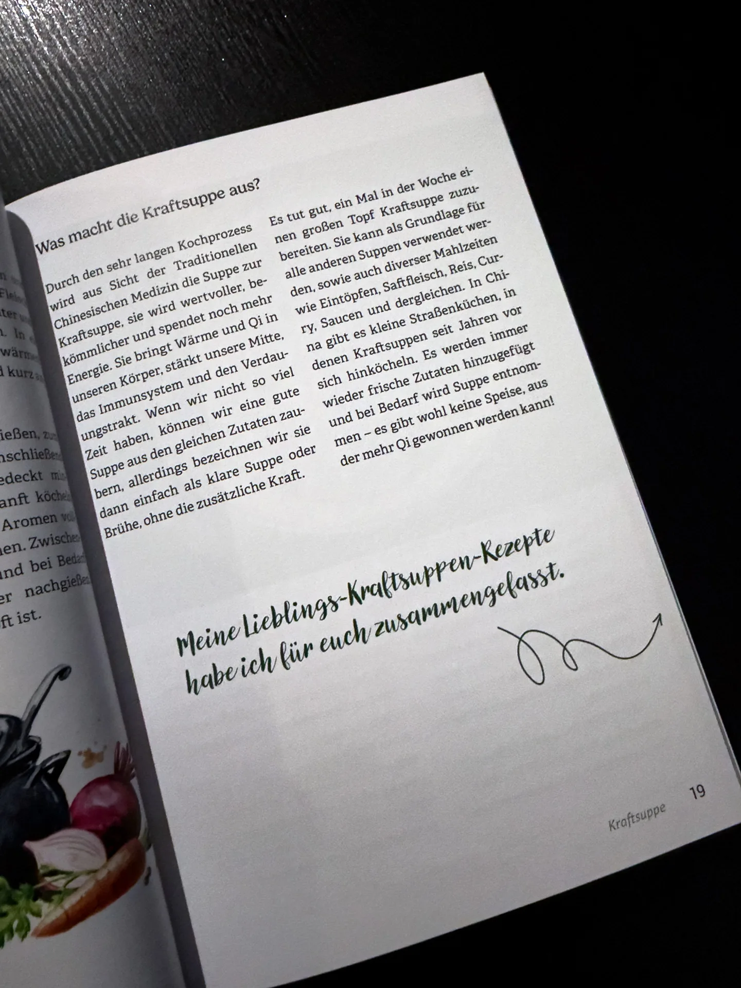 Im Buch wird deutlich, dass eine komplexe Suppe mit exotischen Zutaten nicht zwingend notwendig ist. Bereits eine schlichte Gemüsesuppe aus Blumenkohl und Karotten kann genügen, um das Zentrum zu stärken und dein Verdauungsfeuer zu nähren. Genau hier liegt die Kraft der TCM-Küche: im Einfachen, im Bewussten, im Saisonal-Regionales.