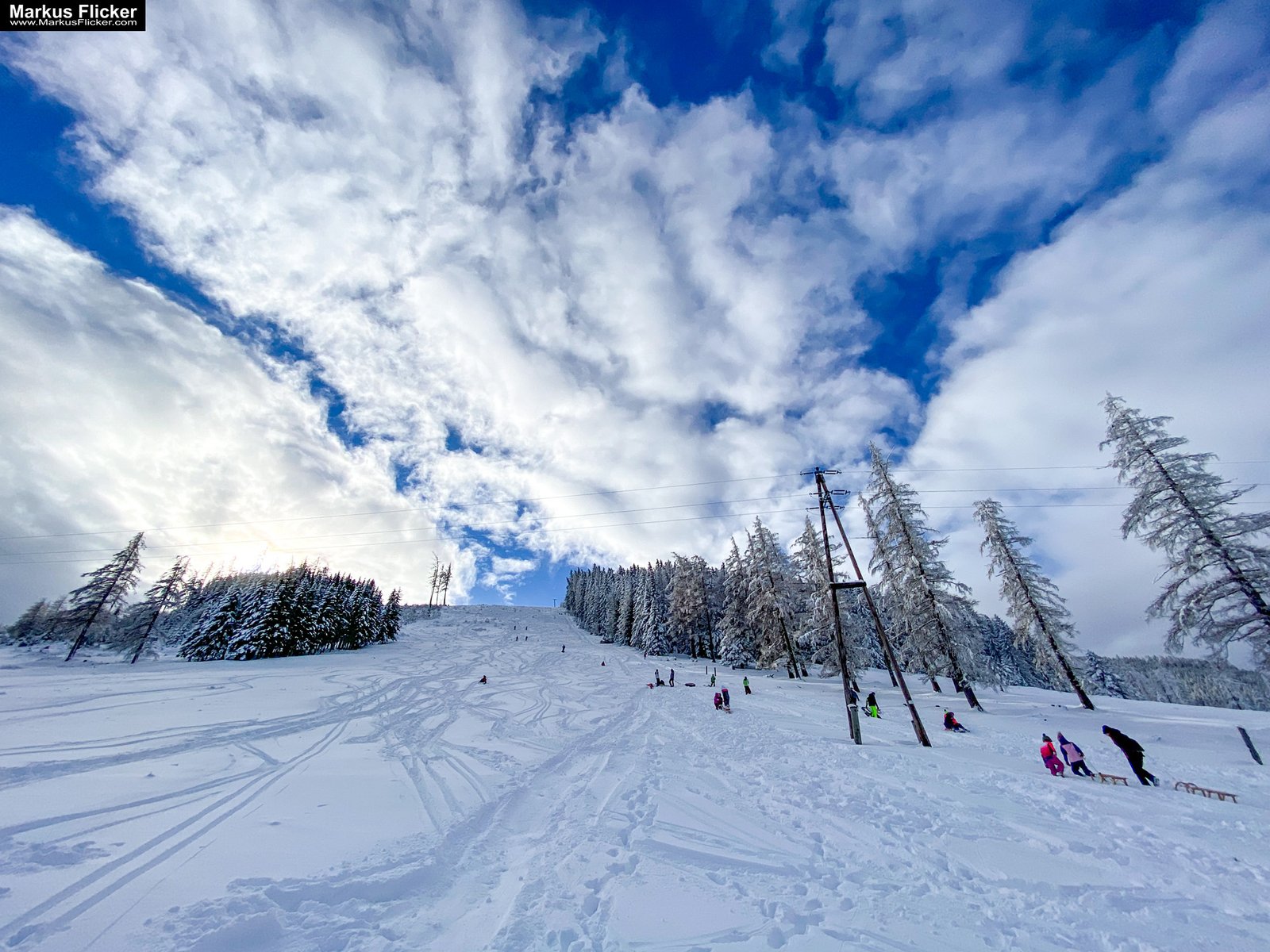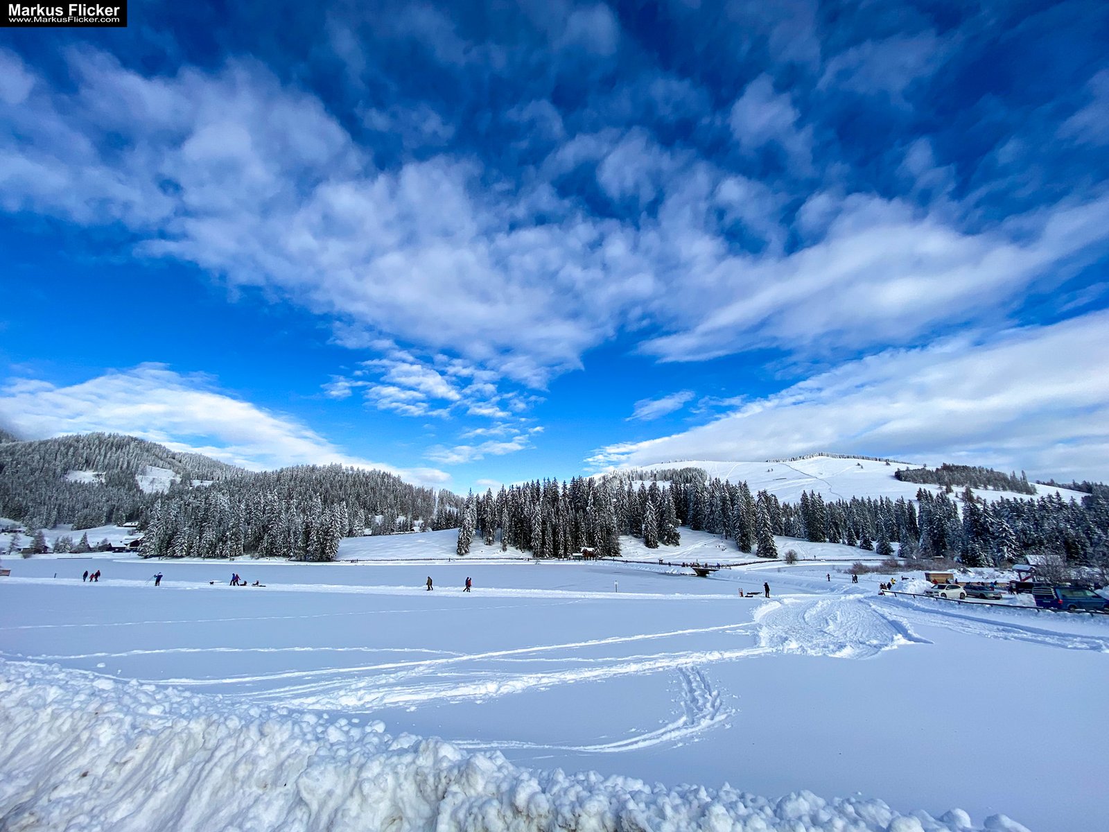 Winterwanderer: Fotografiere Winterwanderer auf den verschneiten Wegen und Pfaden. Die kontrastreiche Landschaft bietet eine tolle Kulisse.