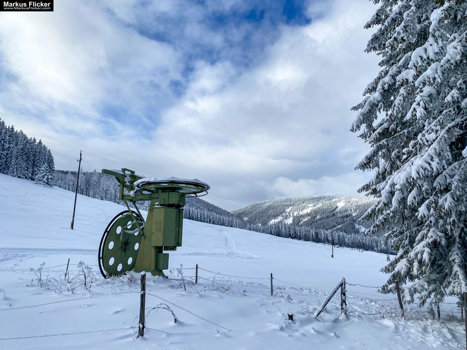 Verschneite Bäume: Einzelne, schneebedeckte Bäume oder Baumgruppen können beeindruckende Motive sein, besonders wenn sie im Nebel stehen.