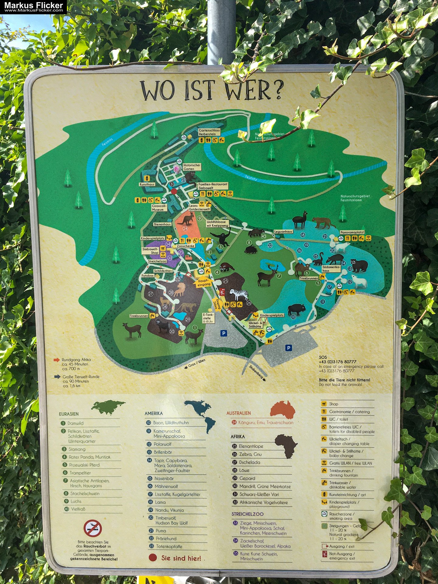 Der Tierpark Herberstein befindet sich in der Nähe des Schlosses Herberstein in der Steiermark, Österreich. Er ist bekannt für seine breite Palette an Tieren aus aller Welt, einschließlich exotischer Arten. Insgesamt ist der Tierpark Herberstein ein großartiger Ort, um die Tierwelt aus aller Welt zu erleben und mehr über die Bedrohung vieler Arten zu erfahren. Es bietet eine große Auswahl an Tieren und Aktivitäten für Besucher jeden Alters und Interessens.