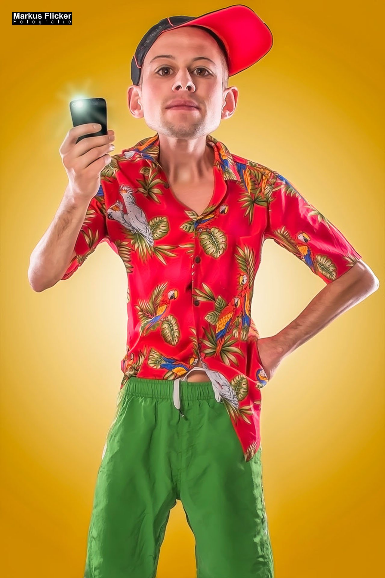 Für das Shooting selbst ist es wichtig, dass Sie und Ihr Modell – in diesem Fall ein Tourist auf der Suche nach dem perfekten Sommer-Selfie – zusammenarbeiten, um dynamische und ausdrucksstarke Posen zu schaffen. Denken Sie an typische Comic-Szenen und versuchen Sie, diese nachzustellen. Experimentieren Sie mit verschiedenen Winkeln und Einstellungen, um das Beste aus jedem Schuss herauszuholen.
